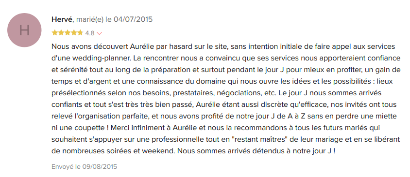 Mon professionnalisme est au cœur de mon approche pour créer le mariage de vos rêves. Avec une expérience et une expertise solides dans l’organisation d’événements, je m’engage à vous offrir un service personnalisé et de qualité. Du premier rendez-vous à la coordination du jour J, je veille à ce que chaque détail soit parfaitement orchestré pour que vous puissiez profiter pleinement de chaque moment. En faisant appel à mes services, vous êtes assurés de bénéficier d’une gestion efficace et d’une équipe de prestataires de confiance. Votre mariage mérite d’être inoubliable, et mon engagement envers l’excellence et le professionnalisme vous garantit une expérience sans stress et des souvenirs inoubliables.