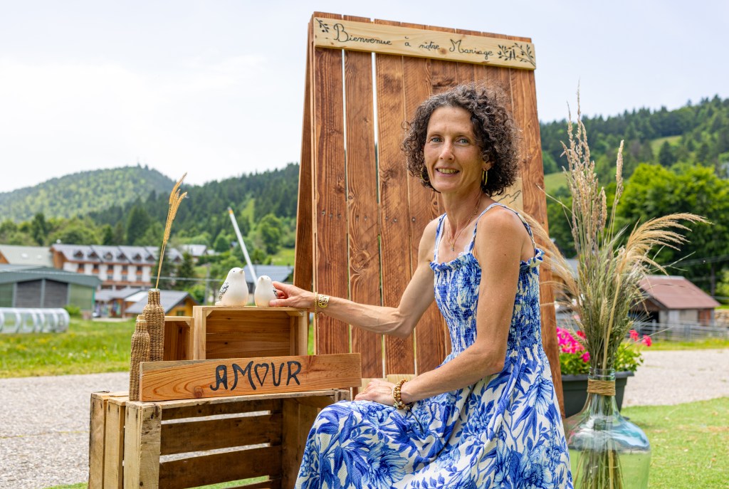 Le thème de ce shooting inspiration, « Mon mariage à la montagne », met en avant la nature et la beauté des paysages montagneux. L’idée était de créer une ambiance chaleureuse et authentique, en utilisant des matériaux naturels tels que le bois, la jute, l’ardoise et le coton. L’aspect eco-friendly était au cœur de la démarche, en utilisant des matériaux recyclés pour la décoration.