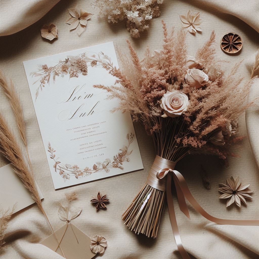 - Création sur-mesure de la décoration de votre mariage: Plan de table, livre d’or, urne menu, faire-part…