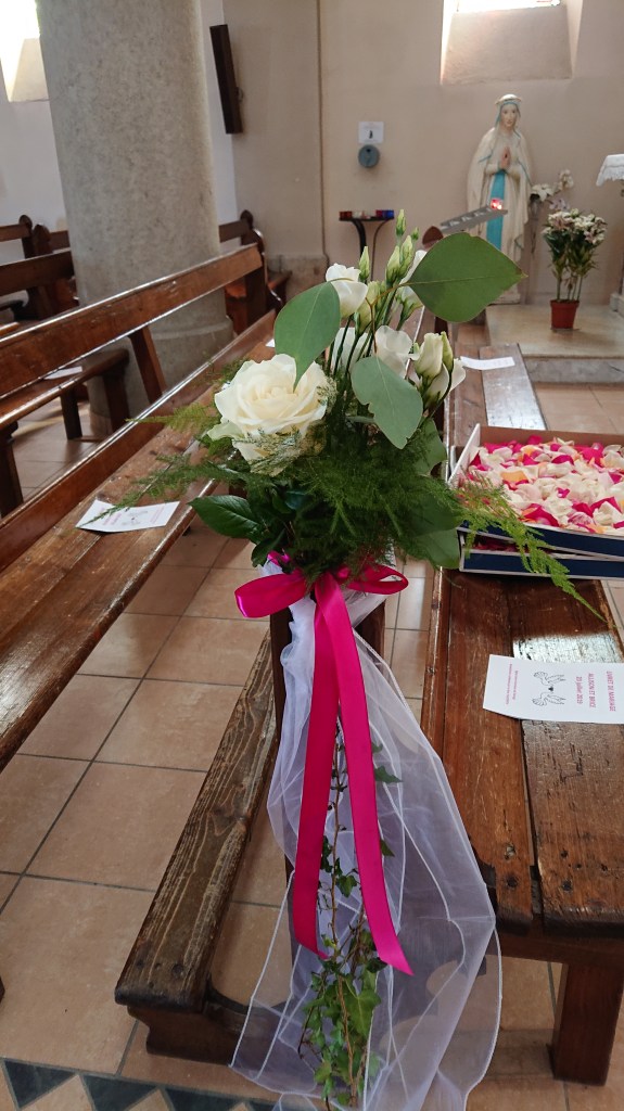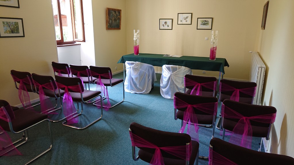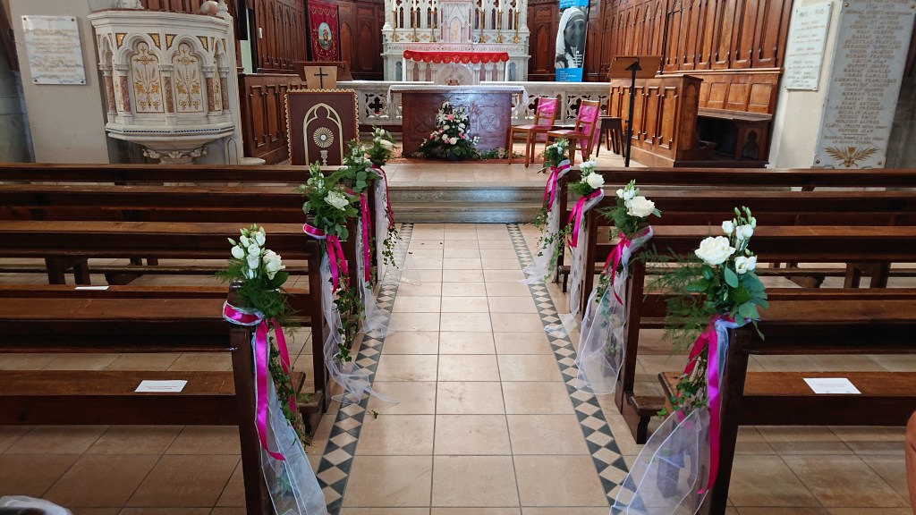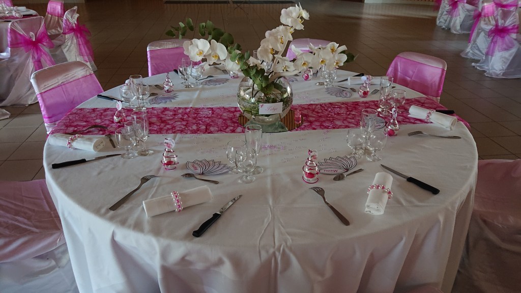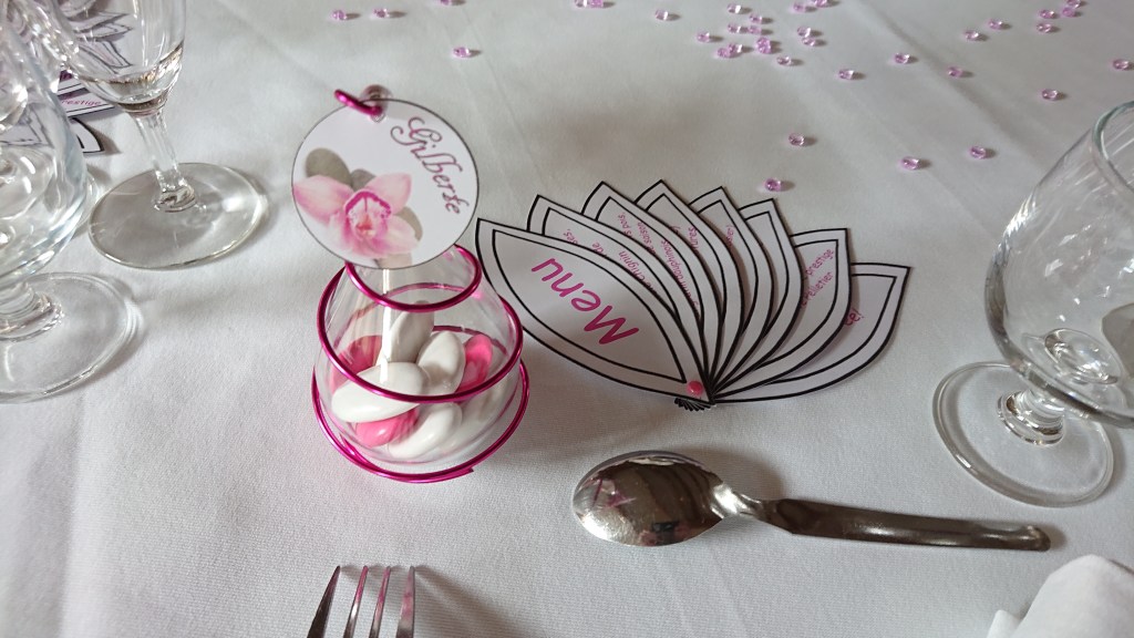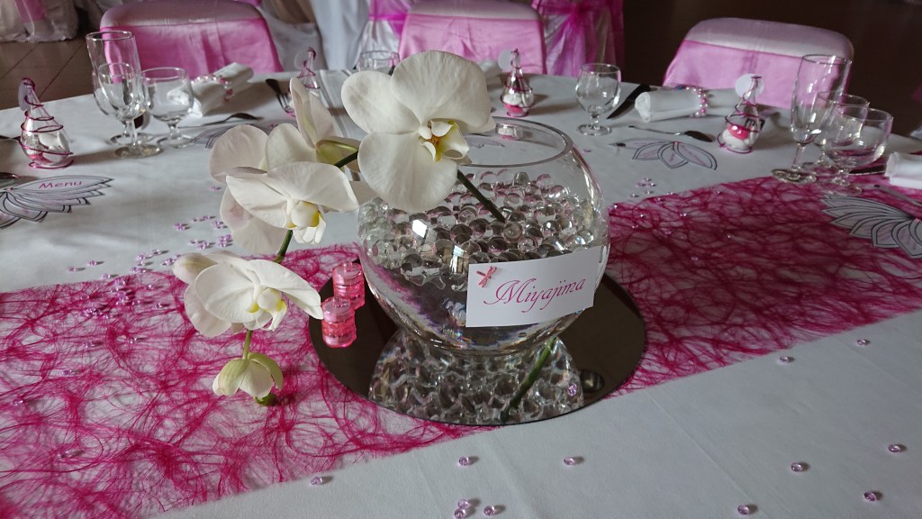 Le mariage s’est déroulé à Duingt, sur un thème orchidée, blanc et fuschia.